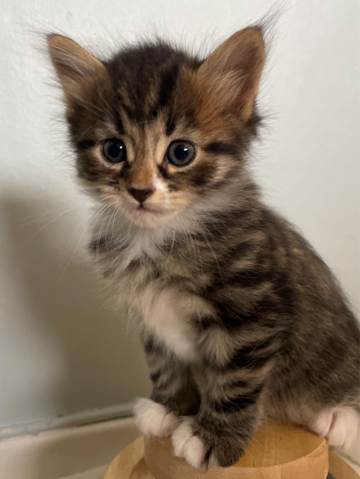 Maja är den piggaste lekigaste katten. De är alla lekiga men hon är den som spelar boll mest och springer runt och busar mest. Hon gillar att bäras, är lugn och go i famnen och har god aptit.